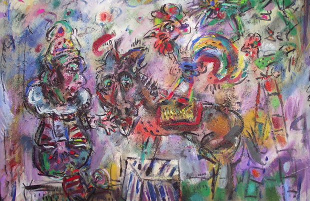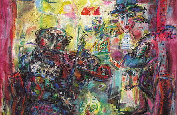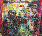 Kérdezzük meg a festőt? Kik ezek, hova mennek? Fellépésre? Vagy ők is lelépnek a színről, mint a cigányzenészek? Hiába kérdeznénk. Ő sem tudja, ha tudná, mondaná, nem bajlódna annyi festékkel.