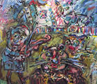 Természetesen Tóth Ernő nem váltott komorra, a humora a régi, a groteszk látásmód, a karikatúráig menő parodisztikus hajlam most is sajátja, és nagyon jó, hogy az, oly kevés festő él velük, hogy nagyon meg kell becsülnünk azt a keveset, aki színeivel, ábrázolásmódjával jókedvre derít bennünket. Nem is tudom, minek szurkoljak. Ennek az új-régi meditatív Tóth Ernőnek - régi is, mert már volt egy ilyen korszaka - vagy annak az oly jellegzetes színes, forgatagos, megszokott-megszeretett képi világának, amely nevét igazán ismertté tette? Azt hiszem, a megalkuvás bűnébe fogok esni. Örülök az új hangvételnek - mert nem visszatérés, hanem fejlődés, őrzi az eddigi eredményeket, a Tóth Ernő-i szuverén látásmódot, de egy újabb, mélyebb dimenzióval gyarapítja.